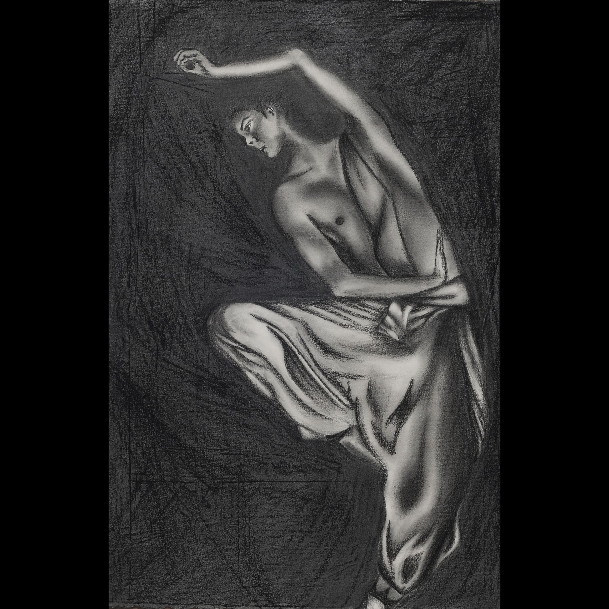 "Khawal" is an original graphite drawing. It is ready to hang in a frame I've built. The work measure 19 inches wide and 26 inches high.