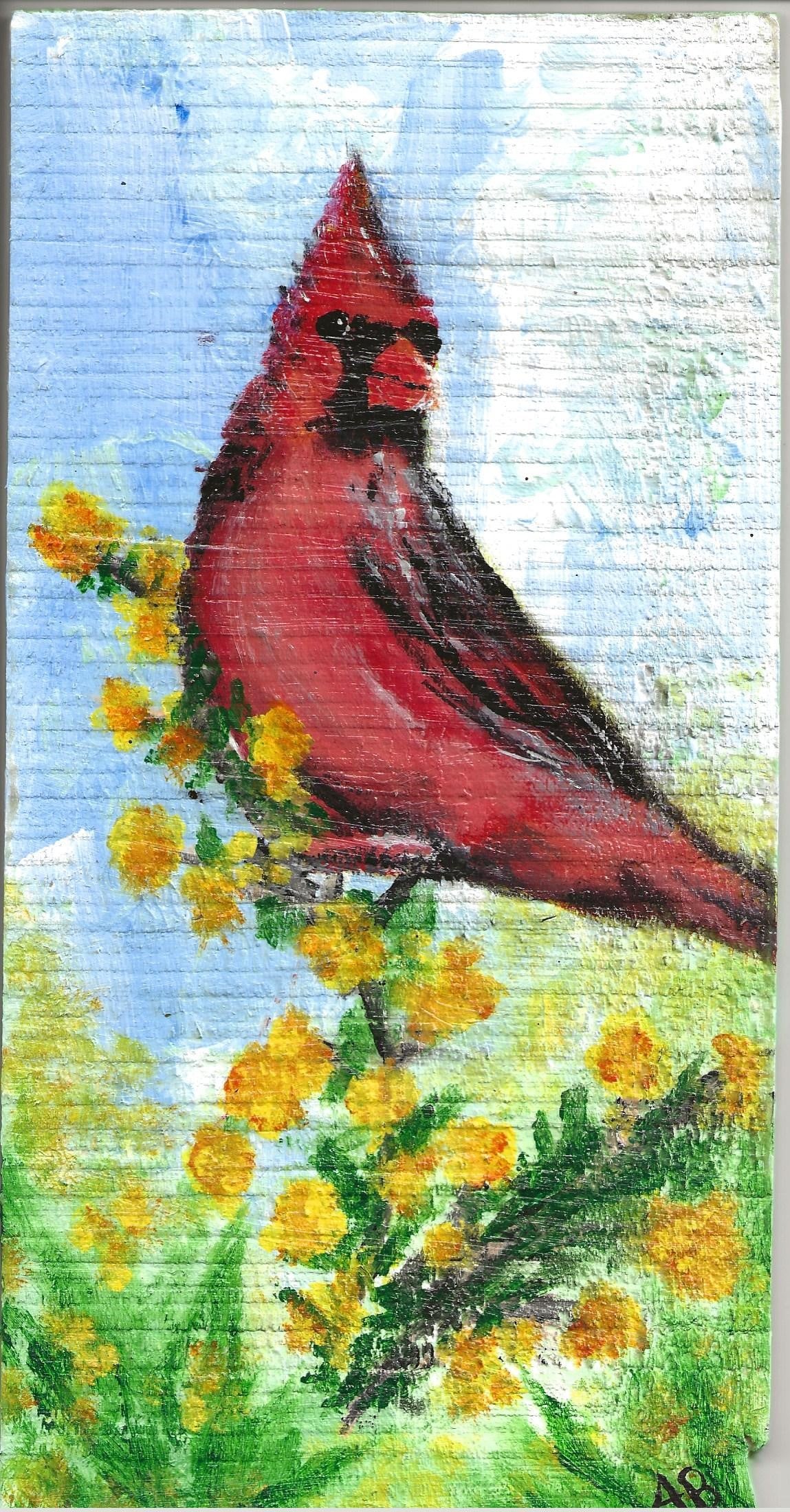 Bring the beauty of spring indoors with the original Spring Cardinal painting. These beautiful birds flood my yard and never fully leave, even when it's cold. Once Spring comes, they're everywhere! I just love painting them.